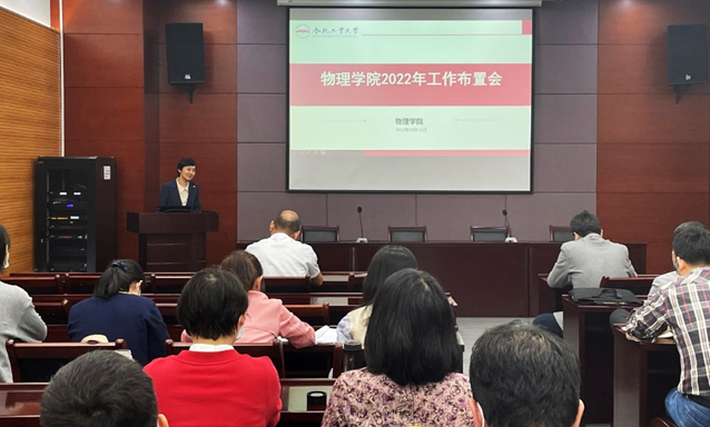 2022年3月16日下午,英国正版365官方网站在翡翠科教楼第五会议室召开2022年度学院工作布置大会。会议由学院党委书记巩惠玲主持,全院教职工参会。