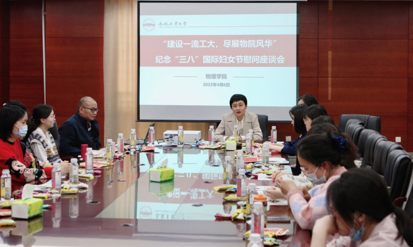 在“三八”国际妇女节到来之际,按照安徽省科教文卫体工会的相关工作要求,英国正版365官方网站分工会以“建设一流工大,尽展物院风华”为主题,在翡翠科教楼第六会议室举行了2022年英国正版365官方网站“三八”国际妇女节慰问座谈会,感谢广大女教职工为学院建设和发展作出的贡献,并进一步激励女教职工坚定理想信念,立足岗位,持续进取。会议由学院分工会主席汪礼柱主持,全院女教职工参会。